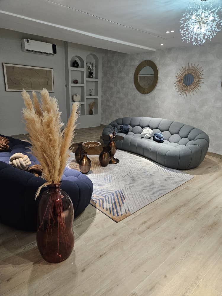 A louer de bels appartements neufs F4 et F5 avec vue sur mer. Cuisines équipées avec side by side, lave-vaisselle, four, miro-onde, hotte, machine à laver, chauffe-eau... Toutes les pièces sont climatisées. Des armoires encastrées et buanderie. Résidence pieds dans l'eau avec gardiennage 24/7, parking, salle polyvalente, large piscine, salle de sport. Situé dans un quartier calme résidentiel et sécurisé au Virage :